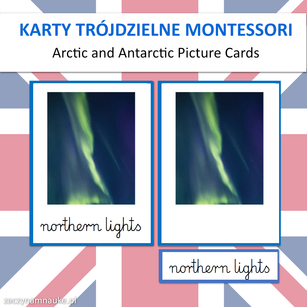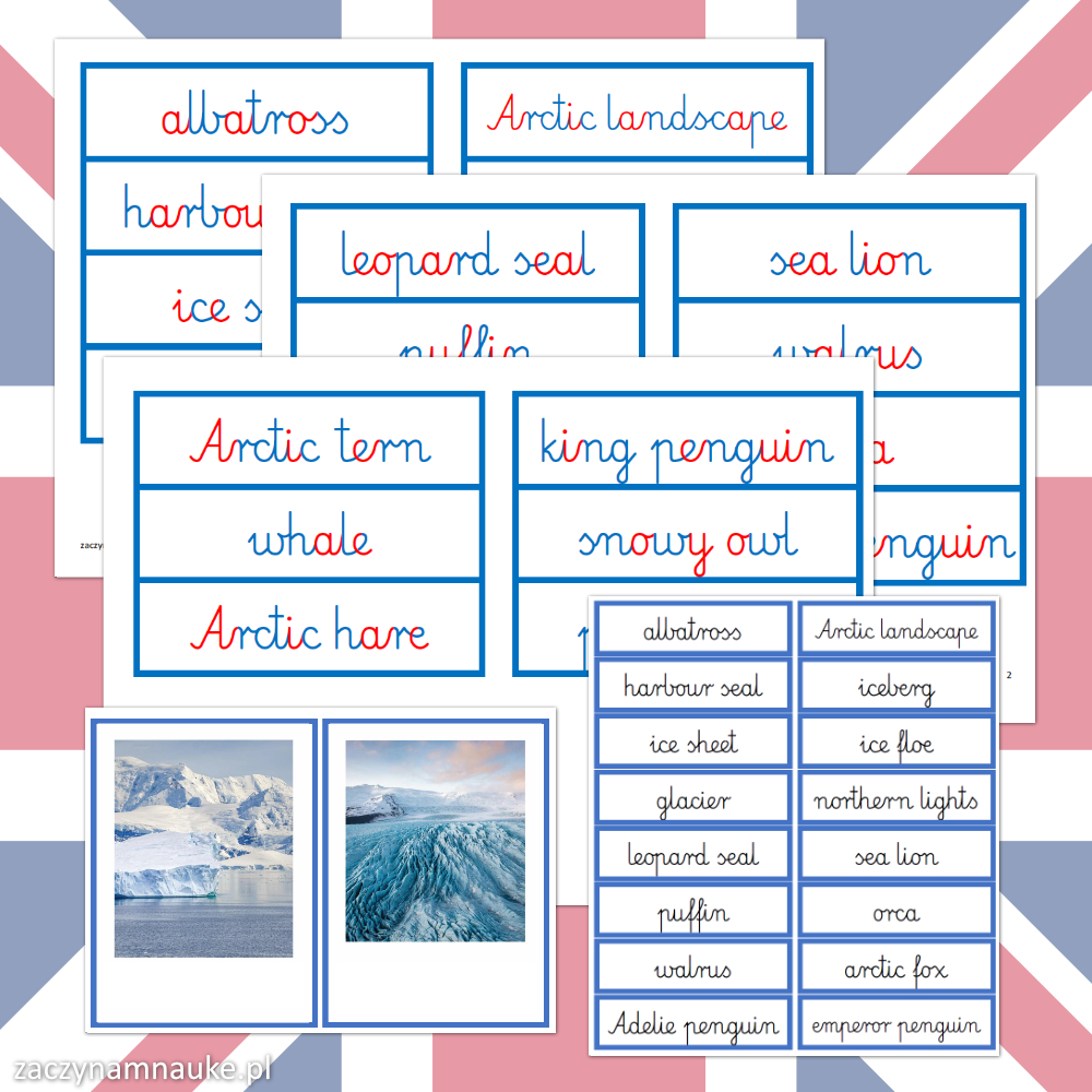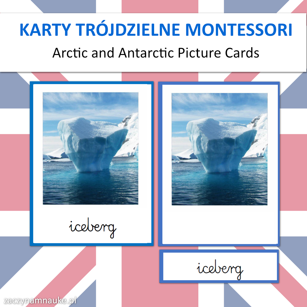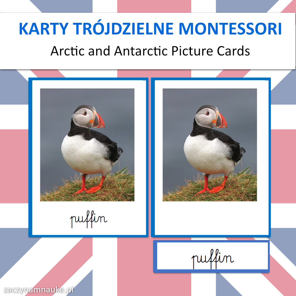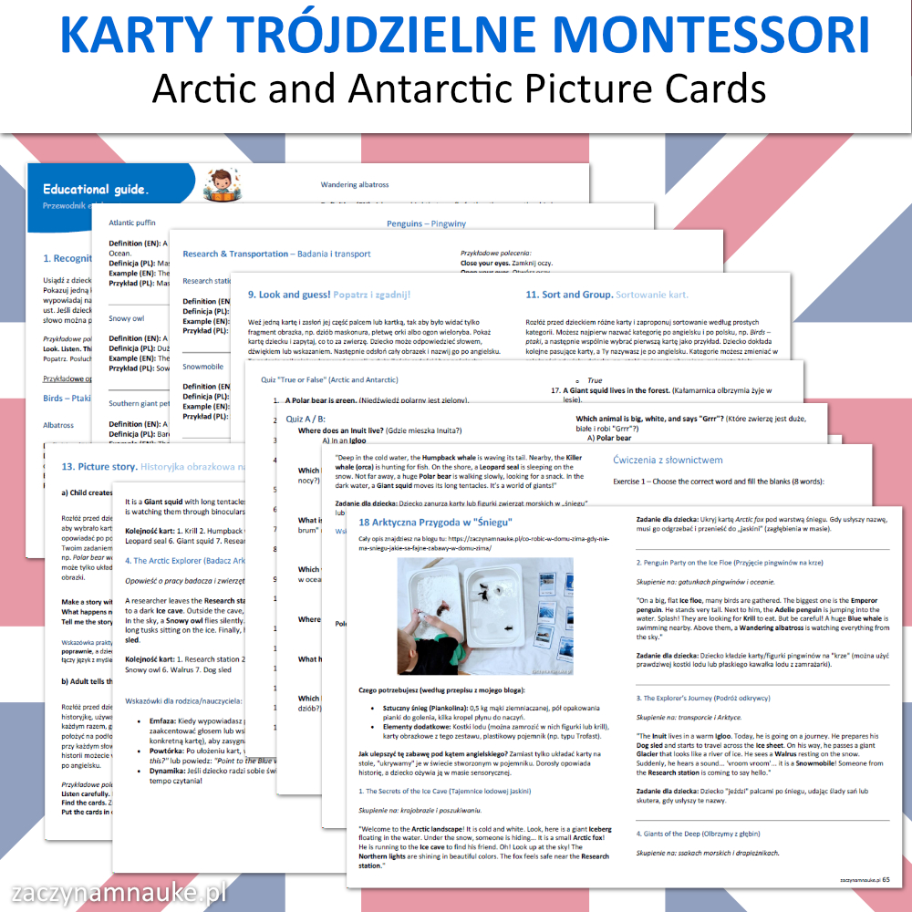 Karty Obrazkowe ANTARKTYDA i ARKTYKA (zwierzęta polarne) – 60 Trójdzielnych Kart Montessori