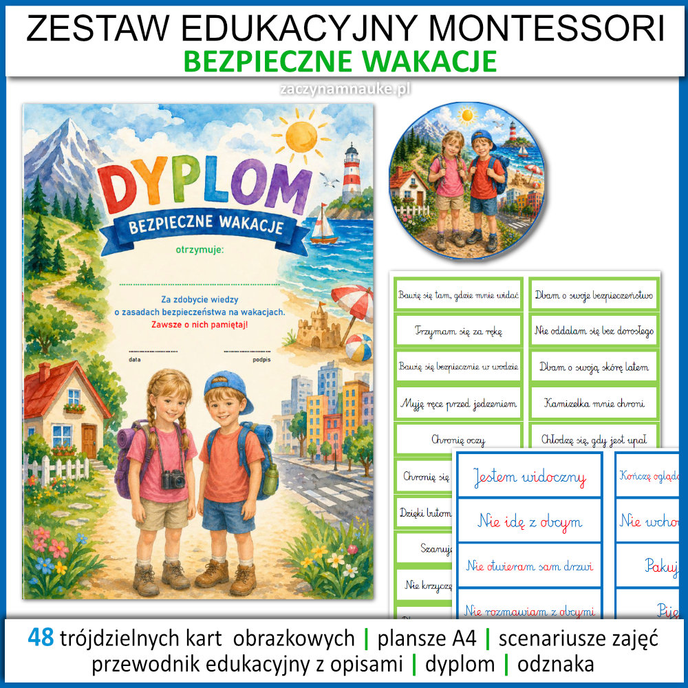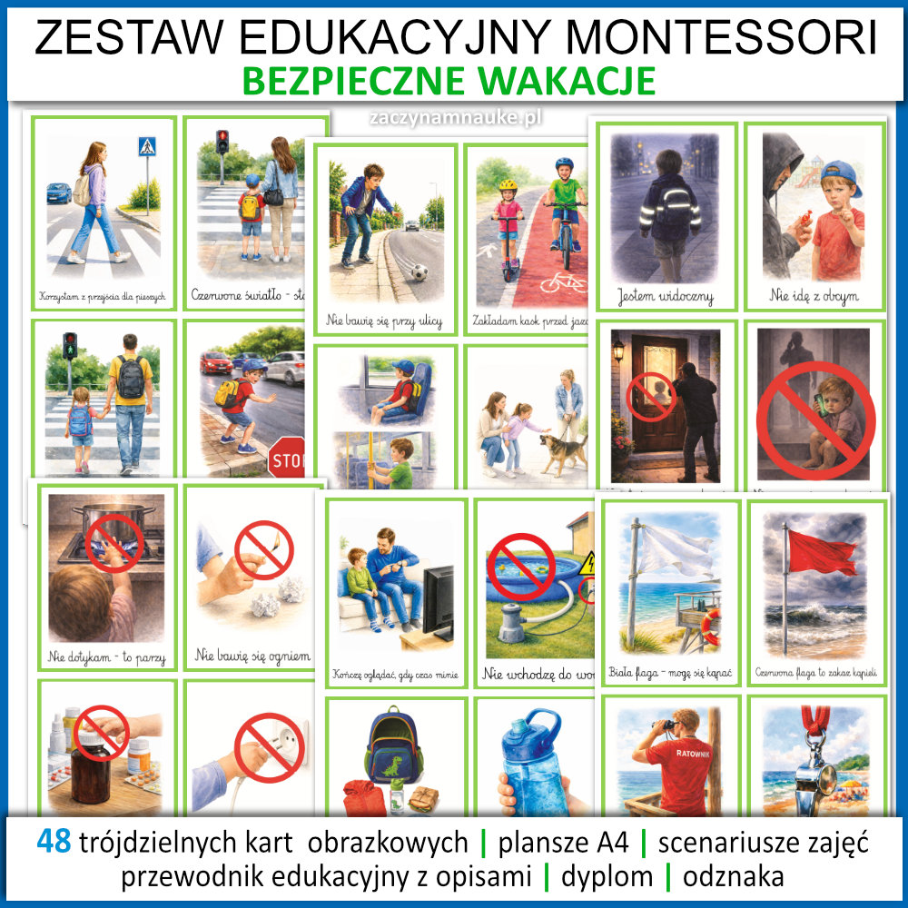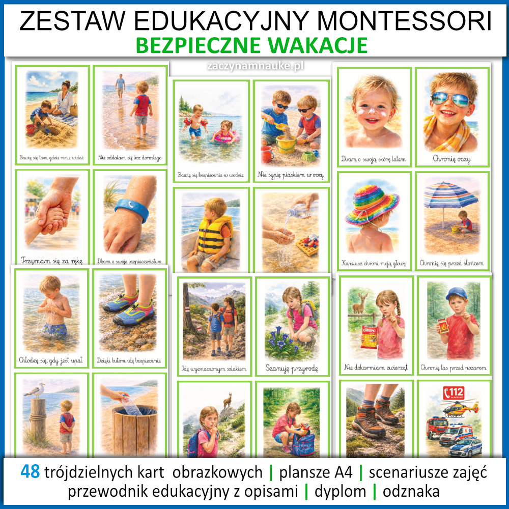 Czy wiesz, jak rozmawiać z dzieckiem o zagrożeniach, nie wywołując u niego lęku? Mój zestaw PDF „Bezpieczne Wakacje” to kompletne narzędzie, które w duchu pedagogiki Montessori przygotuje Twoje dziecko lub podopiecznych do bezpiecznego odpoczynku – bez względu na to, czy spędzacie letni czas w górach, nad morzem, w mieście, czy we własnym domu.