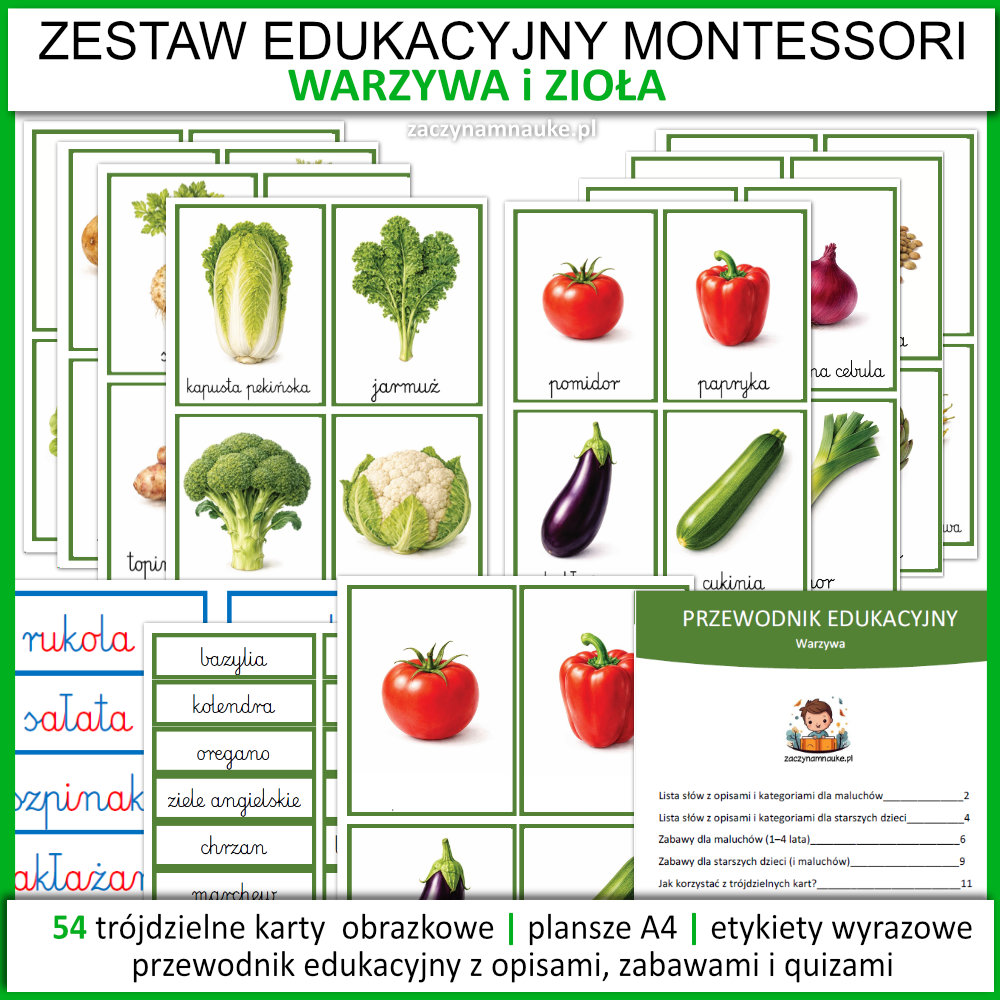 ✏️ Dla kogo są karty edukacyjne WARZYWA i Zioła do druku – Trójdzielne karty Montessori ?