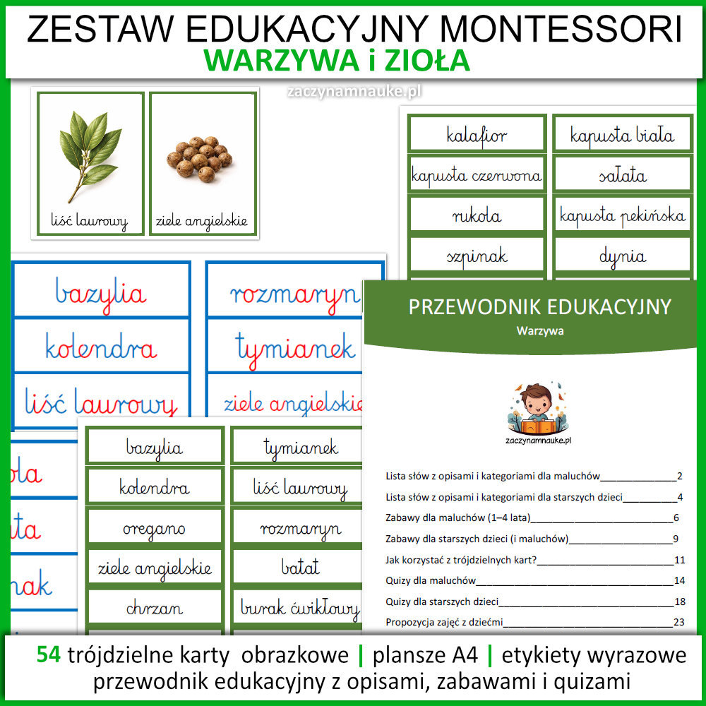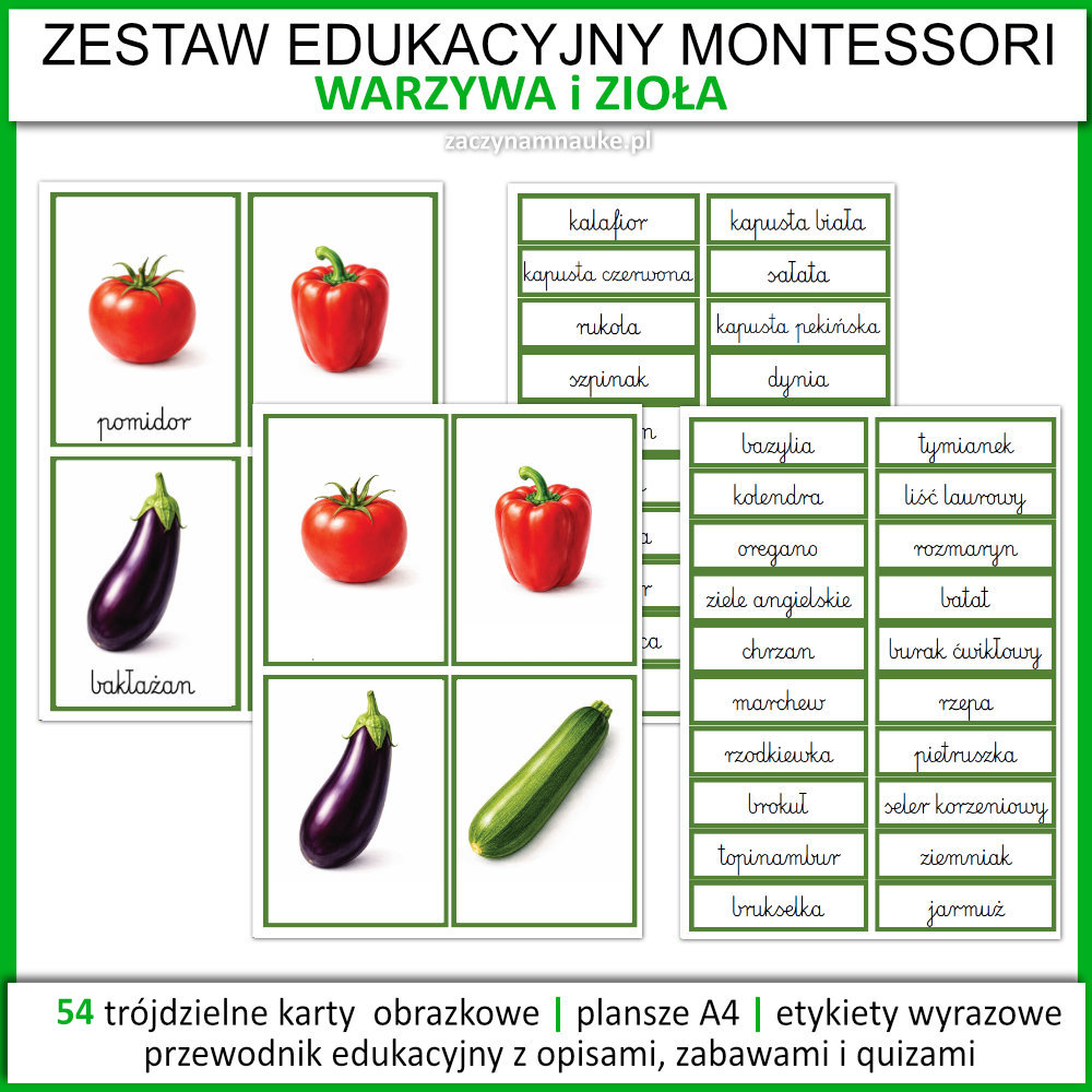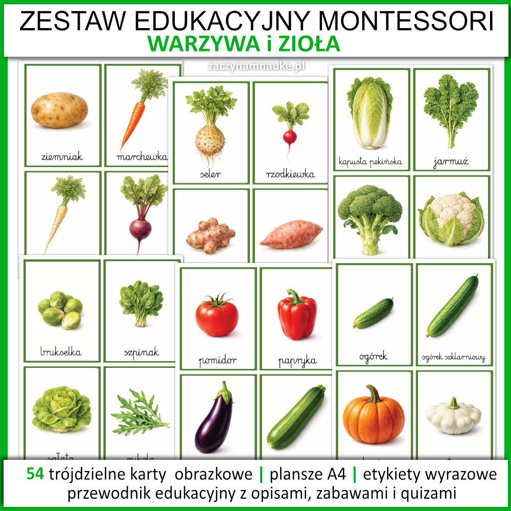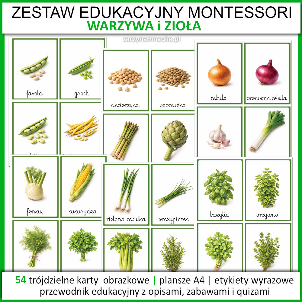 Karty Edukacyjne WARZYWA i ZIOŁA do Druku – Zestaw Montessori Warzywa i Zioła | Przedszkole i Szkoła
