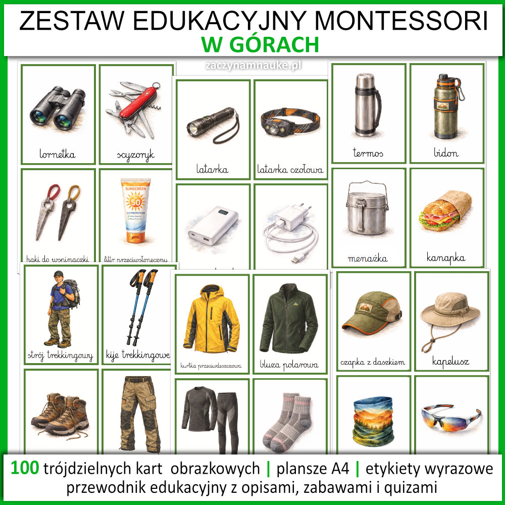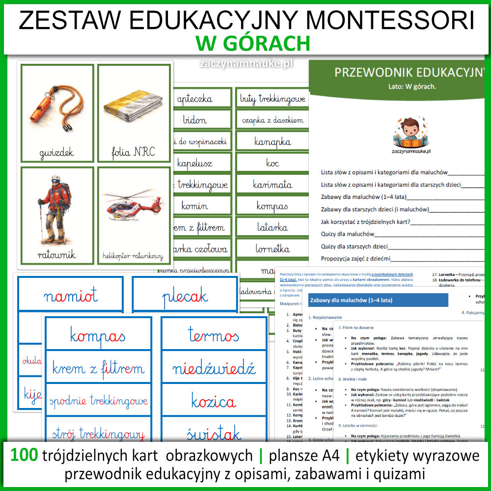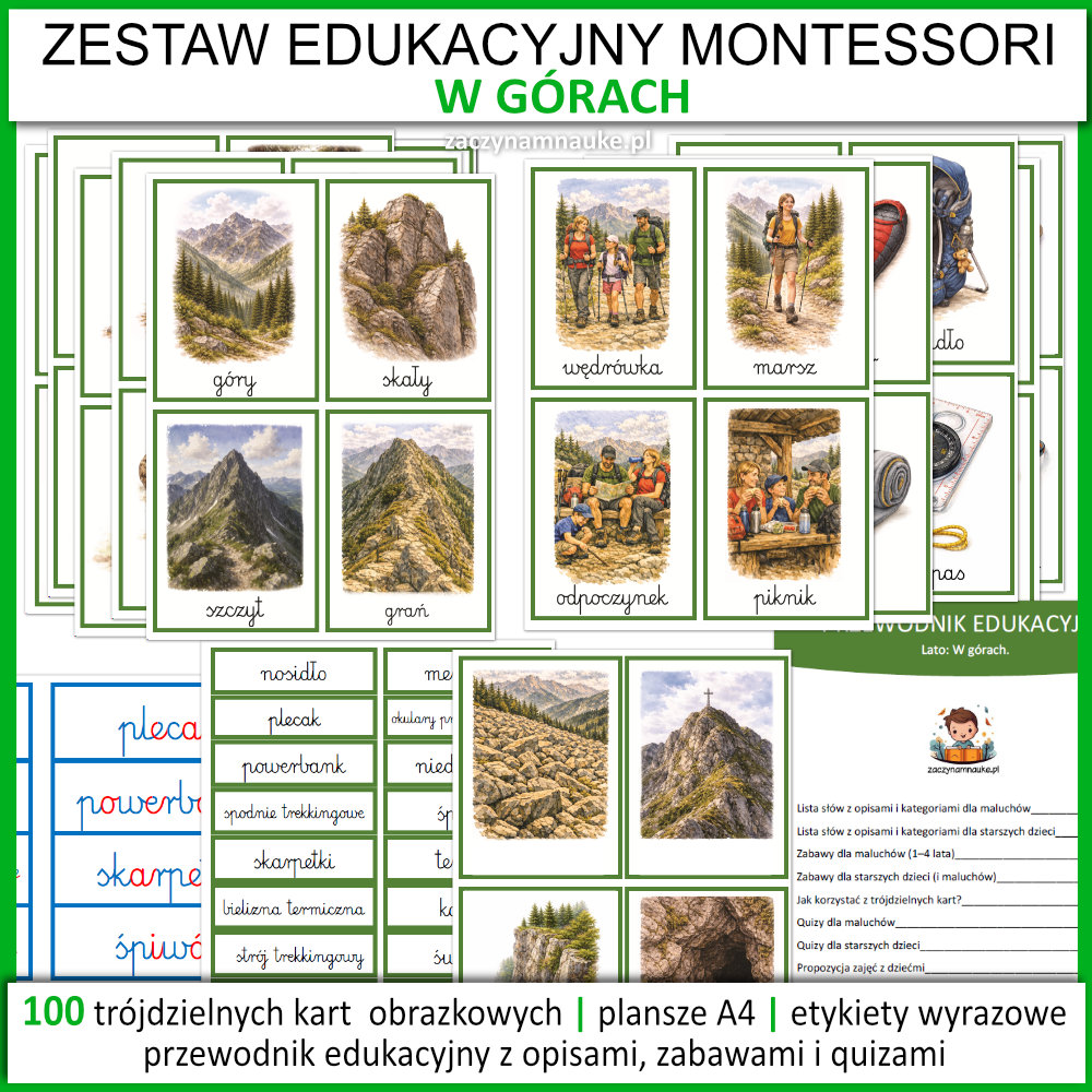 Wakacje w górach – Przedszkole i Szkoła: Wielki Zestaw Edukacyjny PDF (100 Kart Montessori). Lato w górach – zajęcia i pomoce dydaktyczne