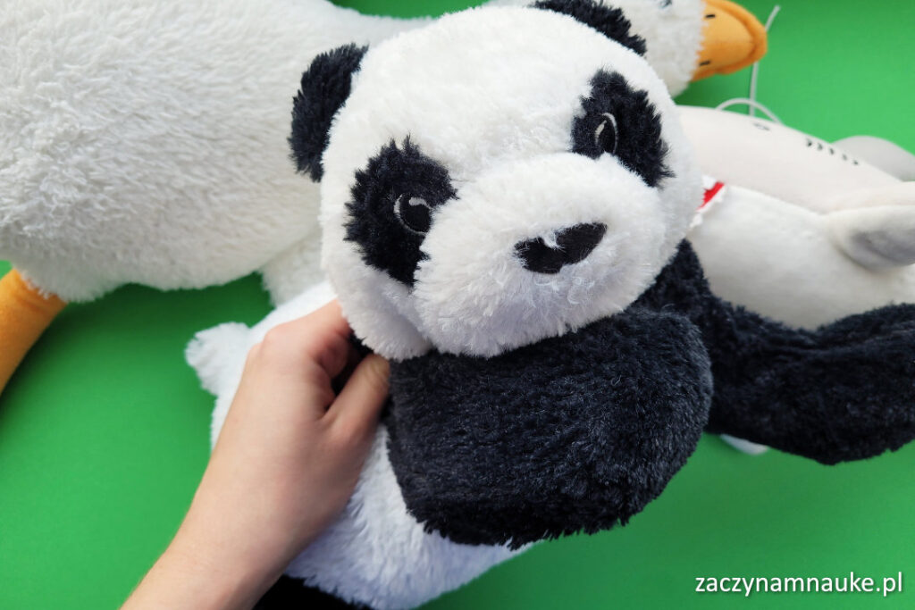 - Pluszak-opiekun Przytulanka może „dbać” o dziecko, np. przykrywać go kocykiem, dawać buziaka, poprawiać czapkę – niech dziecko samo wymyśla, co jeszcze może zrobić!