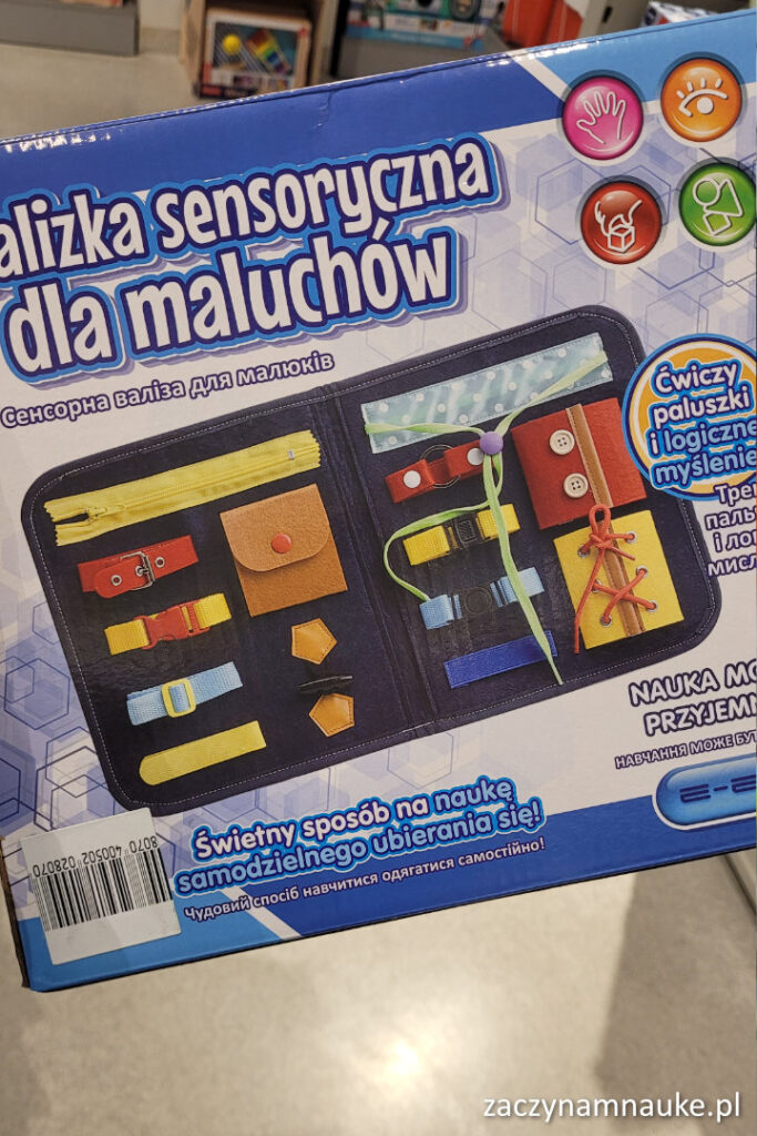 - Melissa & Doug Sensoryczna tablica manipulacyjna z zamkami i zamknięciami.